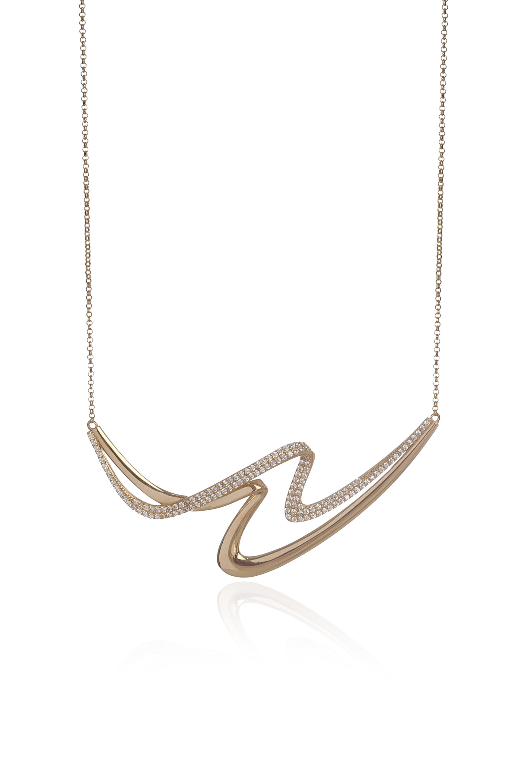 שרשרת זהב מבריקה 14K בעיצוב גל מודרני עם זרקונים.