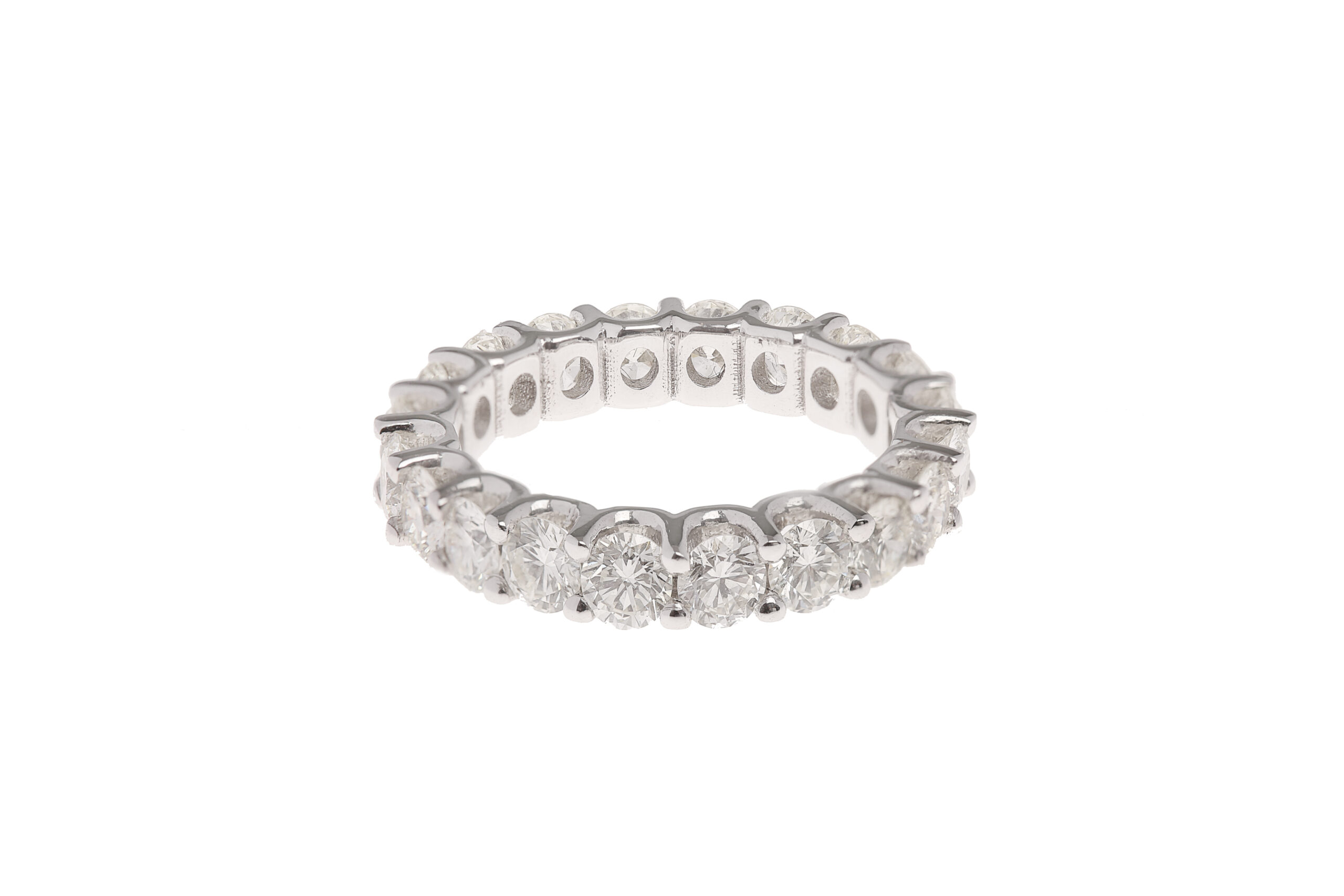טבעת איטרניטי משובצת יהלומים לכל אורכה ועשויה זהב לבן 14 קראט.