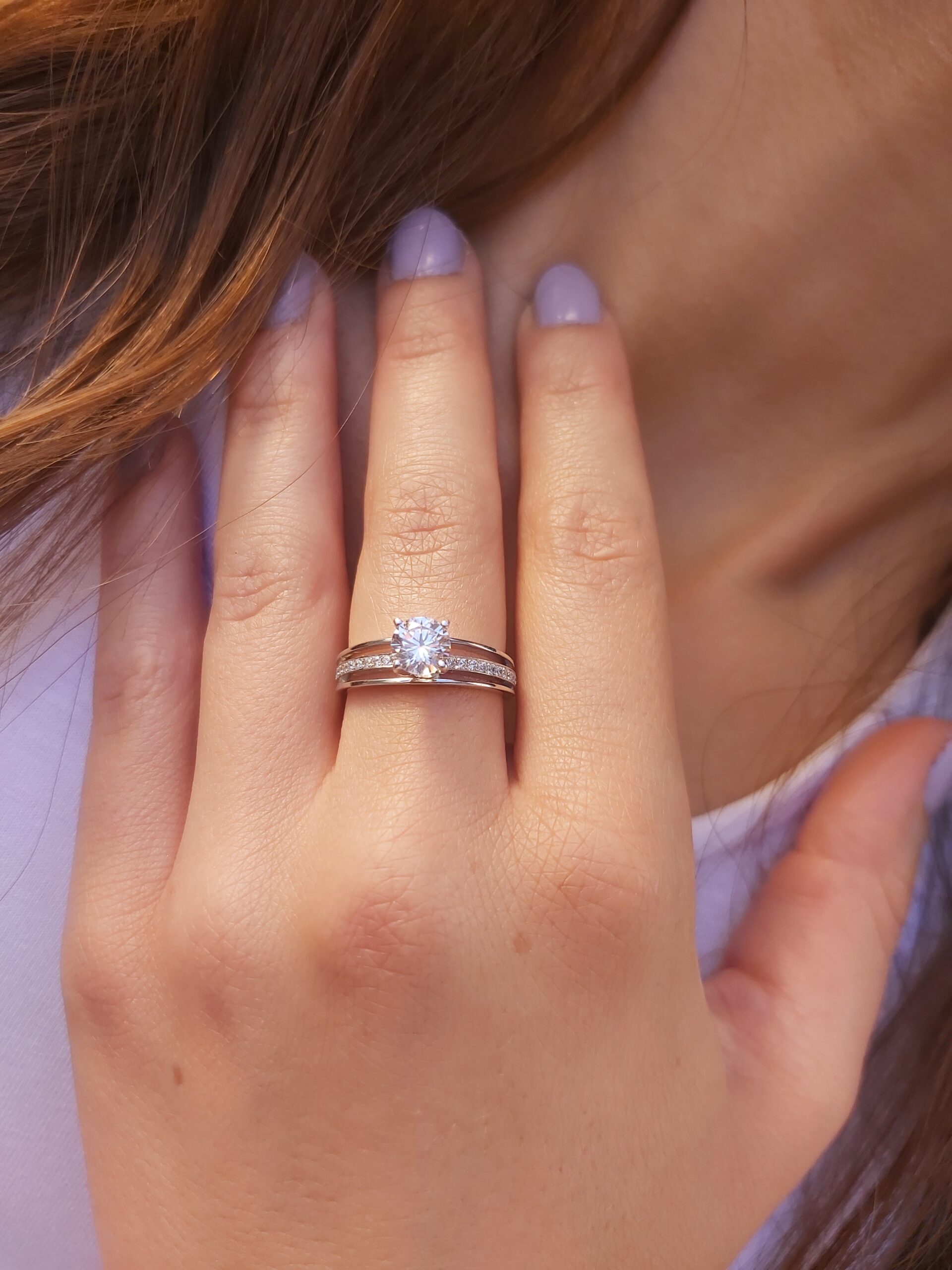 היהלום המרכזי זוהר בעוצמה ויוצר תחושה של טוהר נקי ומושלם.
