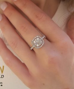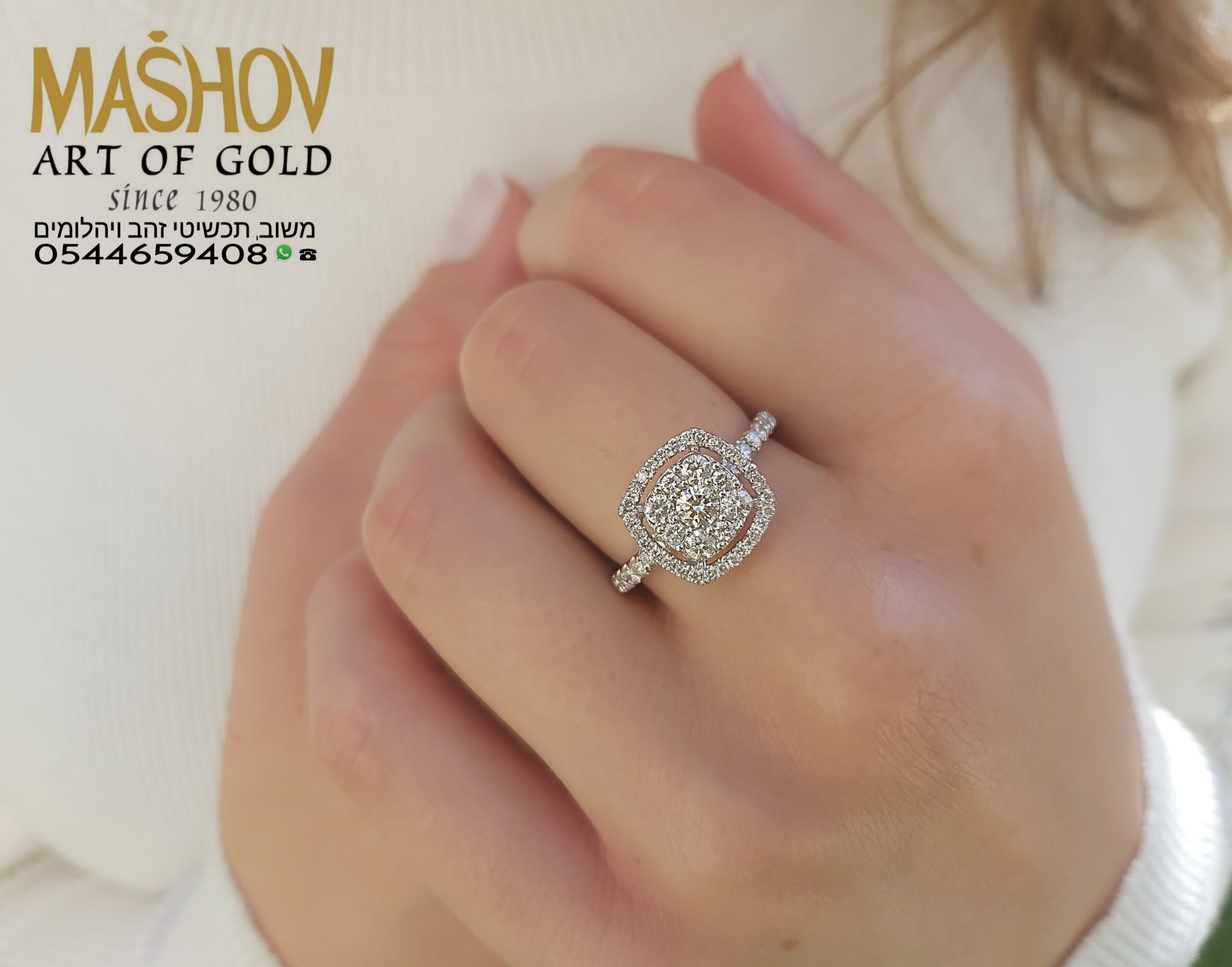 טבעת זהב לבן 14K עם יהלום מרובע מרכזי