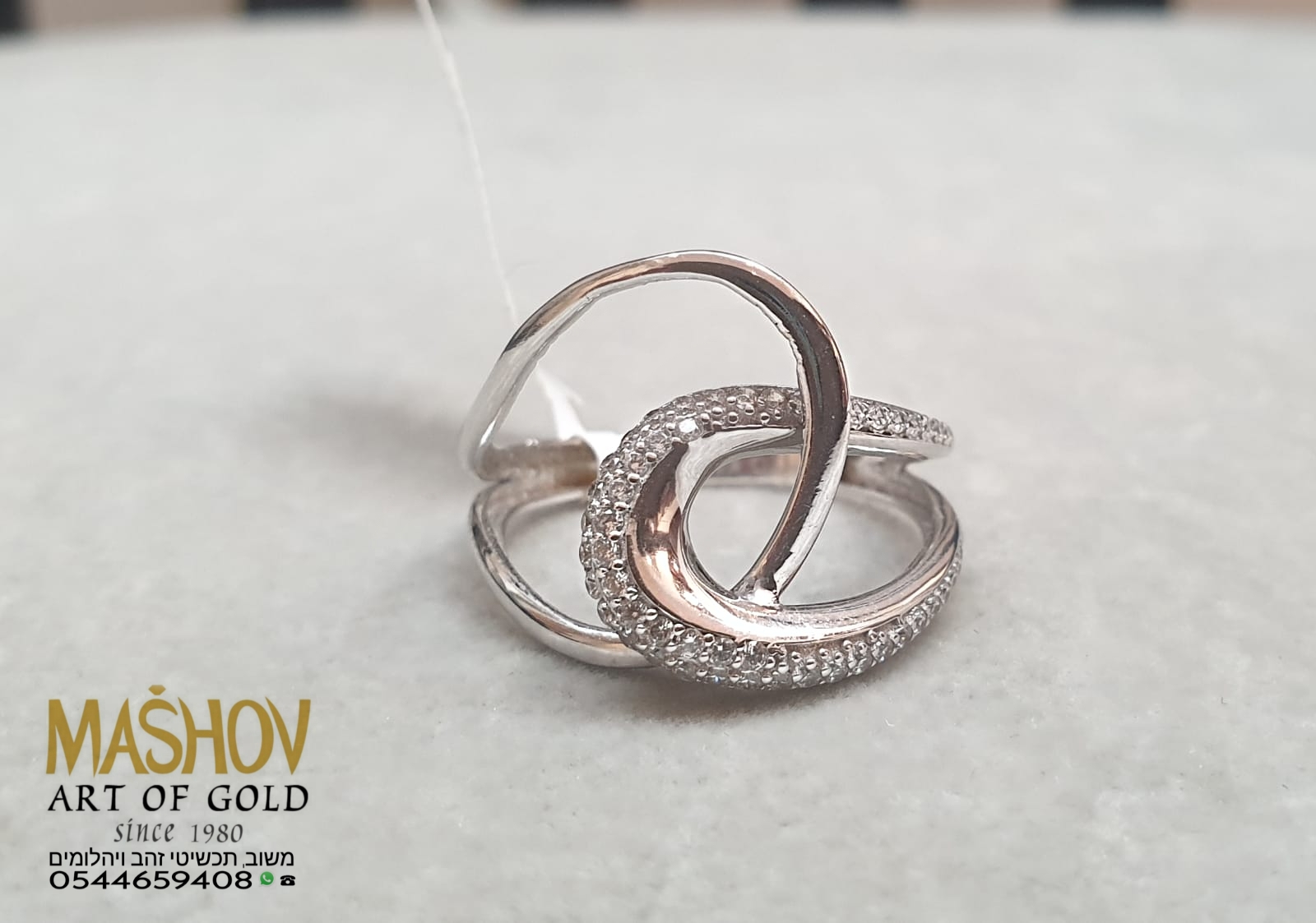 הטבעת הזו נראית כמו שתי נשימות של סטייל שמתחברות לרגע אחד מושלם.