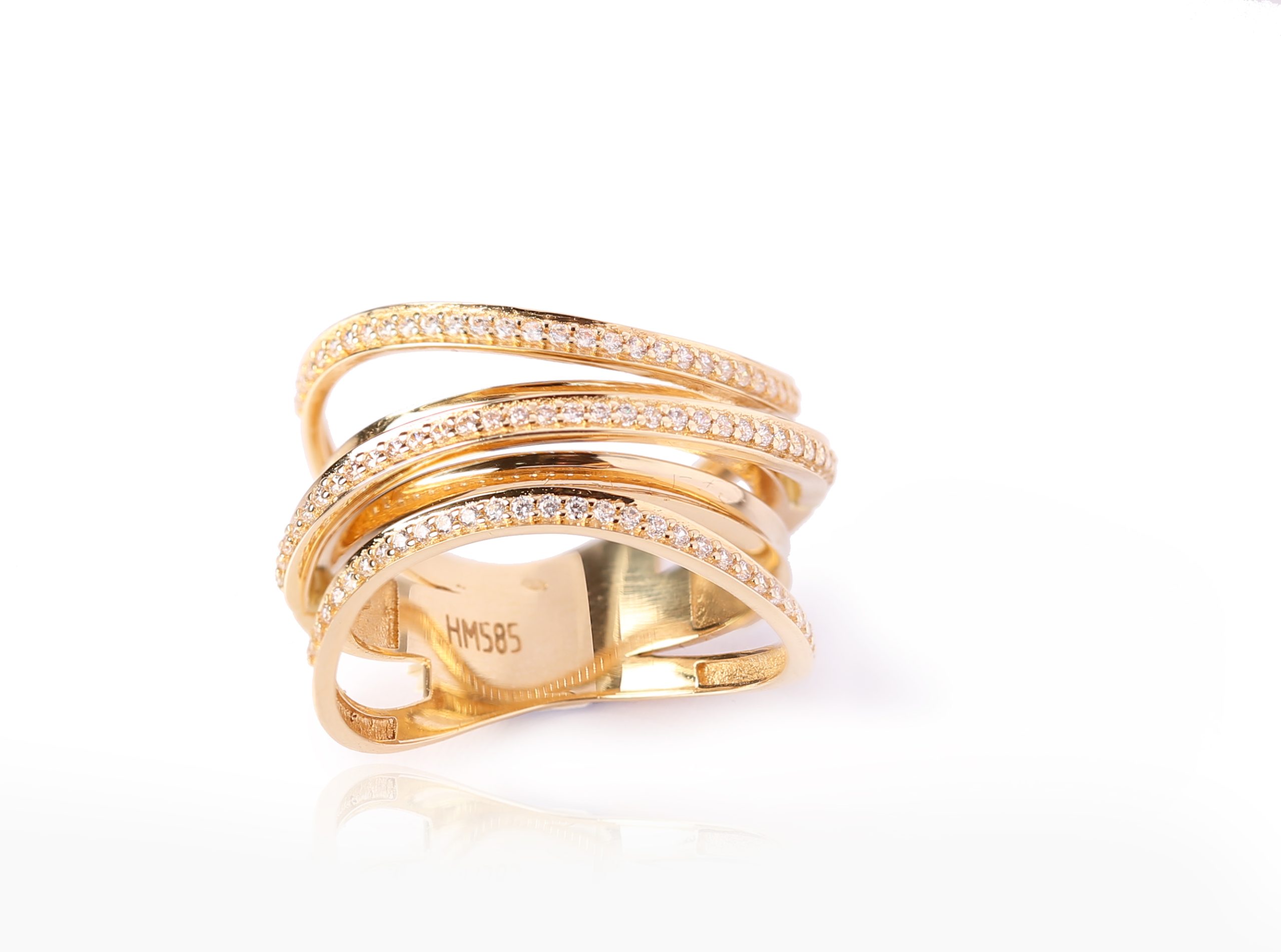 רצועות הזהב נעות בין גימור חלק ומלוטש לבין שיבוץ פאווה צפוף של זרקונים נוצצים. 💎💖