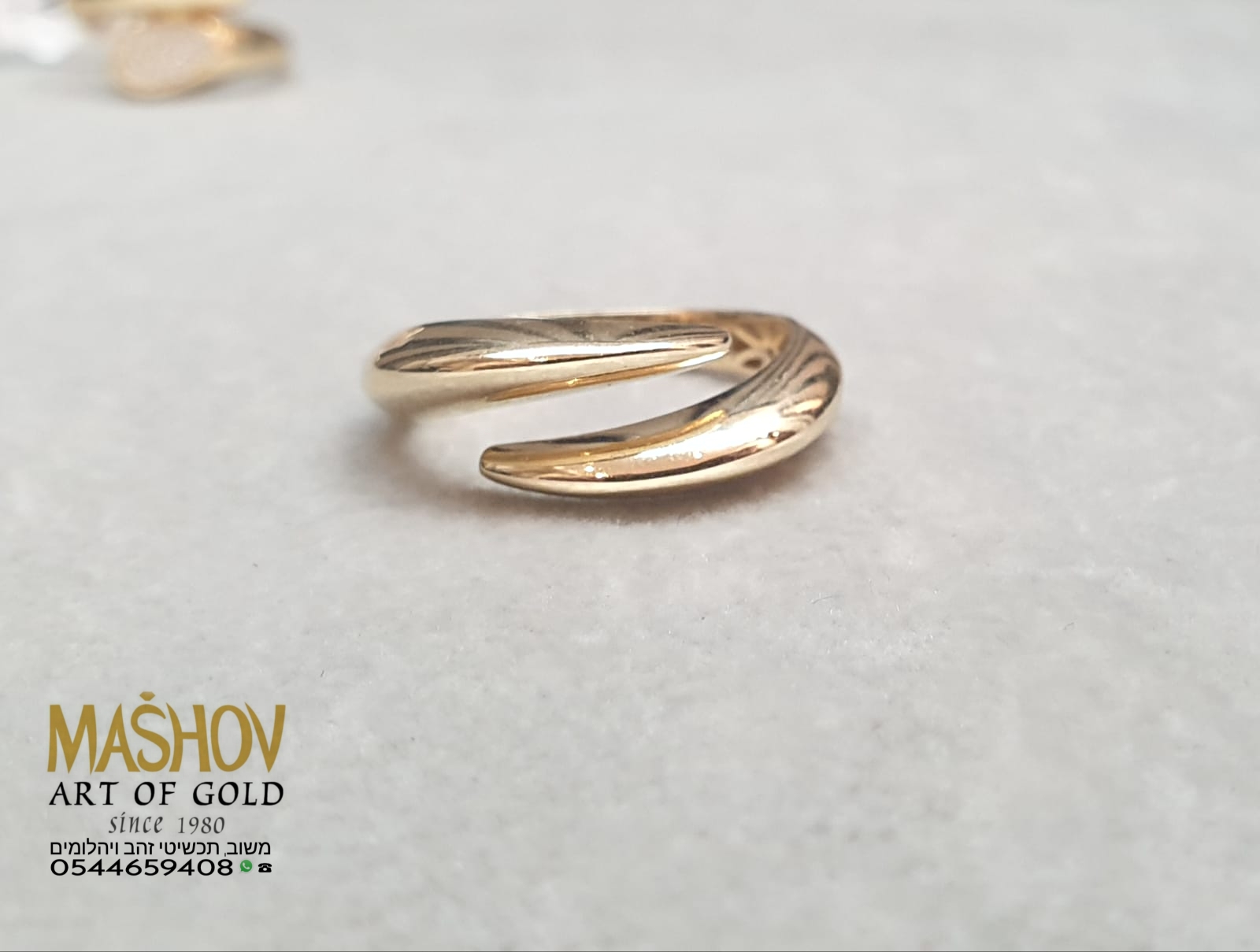 טבעת זהב צהוב 14K בעיצוב פתוח וחלק.