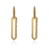 עגילים מזהב צהוב 14 קראט, עם מבנה מאחורי האוזן, המעוצבים בצורת מניפה גיאומטרית משובצת זירקונים.