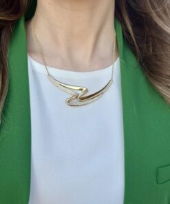 שרשרת זהב מבריקה 14K בעיצוב גל מודרני עם זרקונים.