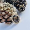 המרכז משובץ בקבוצת זרקונים המדמה אבן גדולה, והוא מוקף הילה כפולה של שיבוץ עדין.