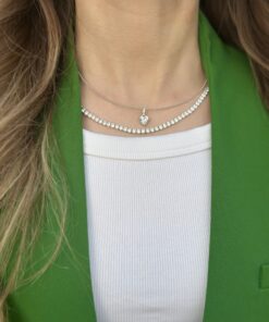שרשרת טניס מבריקה שמשלבת שורה של אבני זירקון קטנות ונוצצות, היוצרות יחד זרימה של אור טהור.