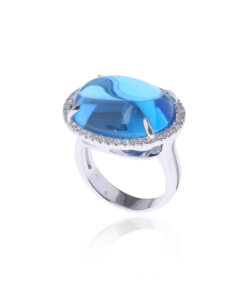 אבן הבלו טופז והיהלומים סביבה יוצרים תכשיט עוצר נשימה.
